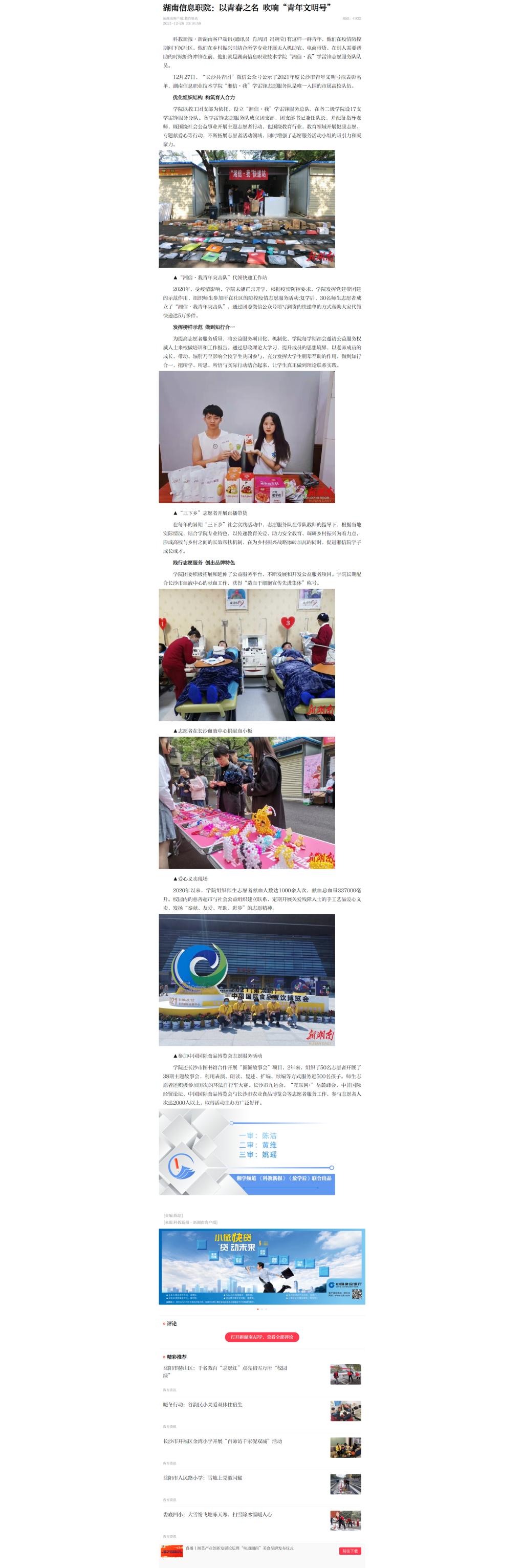 12月28日,新湖南发布《湖南信息职院:以青春之名 吹响“青年文明号”》。