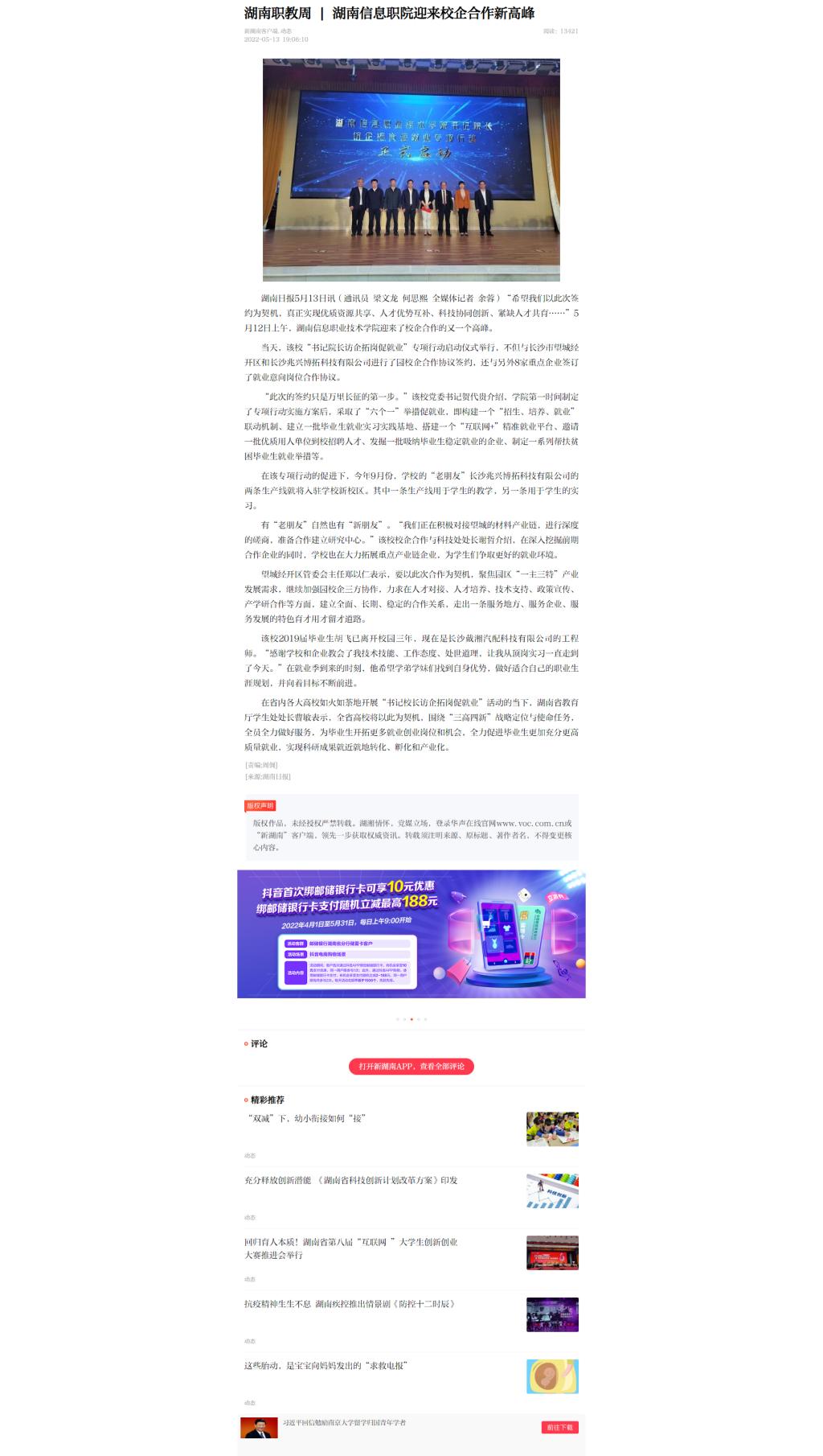 5月13日,新湖南发布《湖南职教周|湖南信息职院迎来校企合作新高峰》