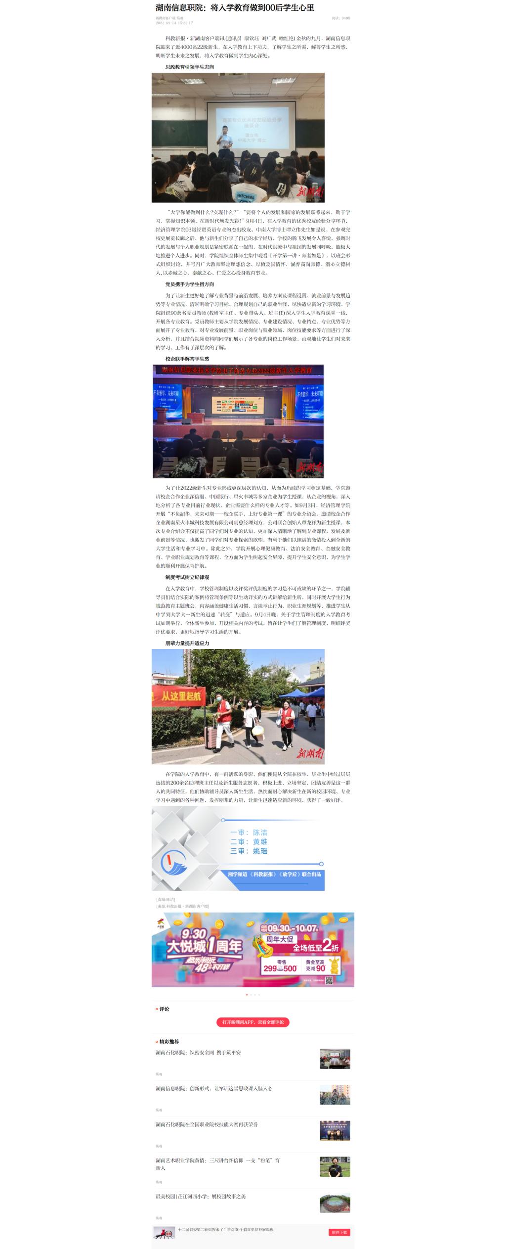 9月14日,新湖南发布《湖南信息职院:将入学教育做到00后学生心里》