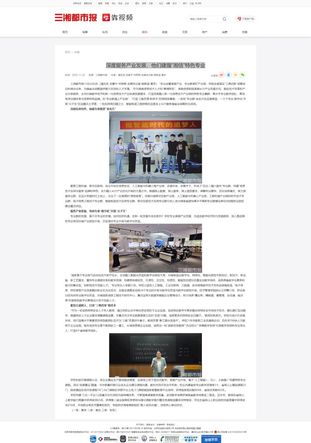 11月22日,三湘都市报发布《深度服务产业发展,他们建强“湘信”特色专业》