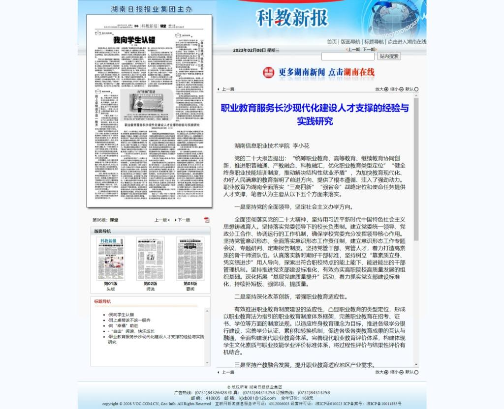 2月8日,科教新报发布《职业教育服务长沙现代化建设人才支撑的经验与实践研究》