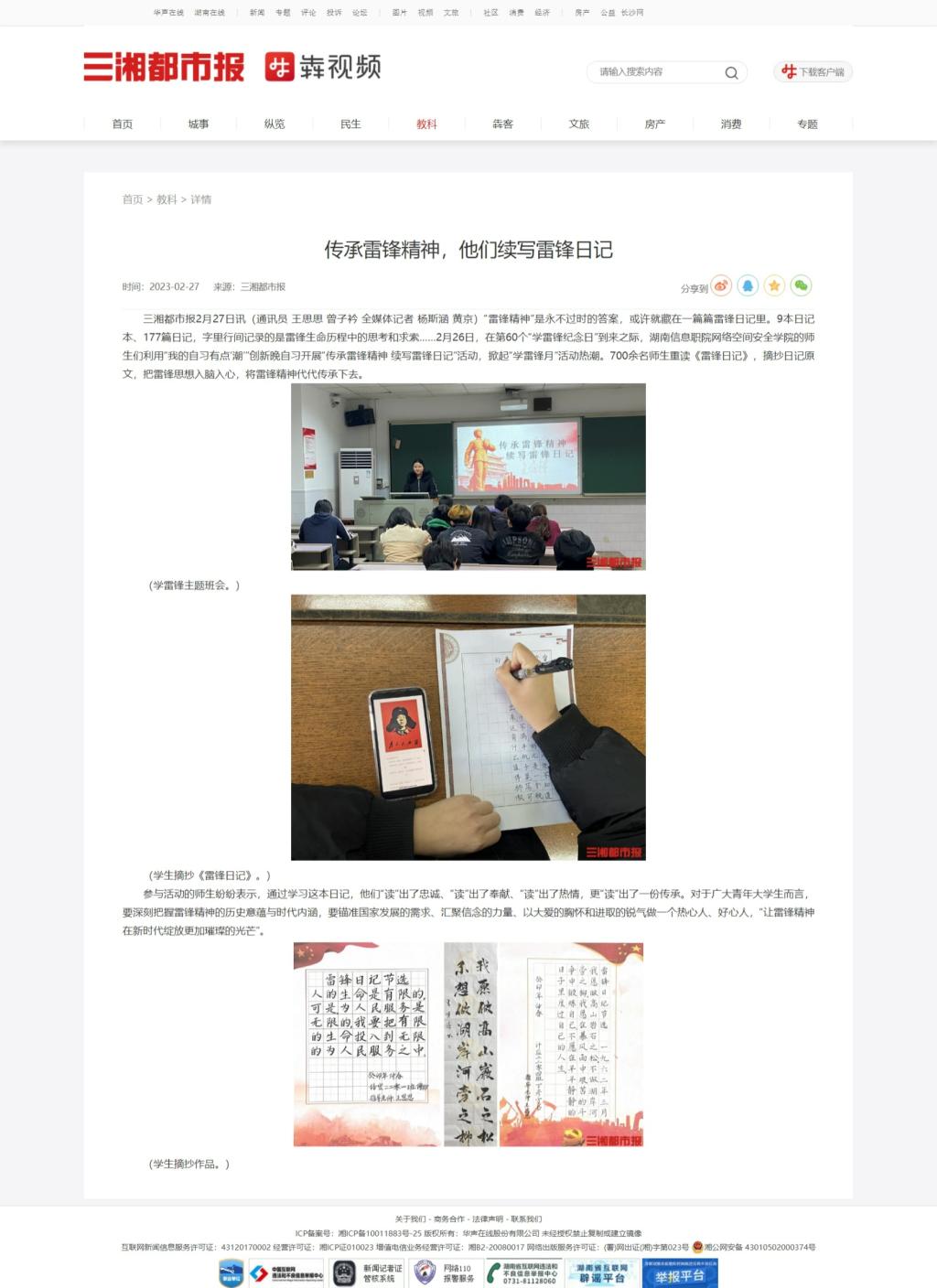 2月27日,三湘都市报发布《传承雷锋精神,他们续写雷锋日记》