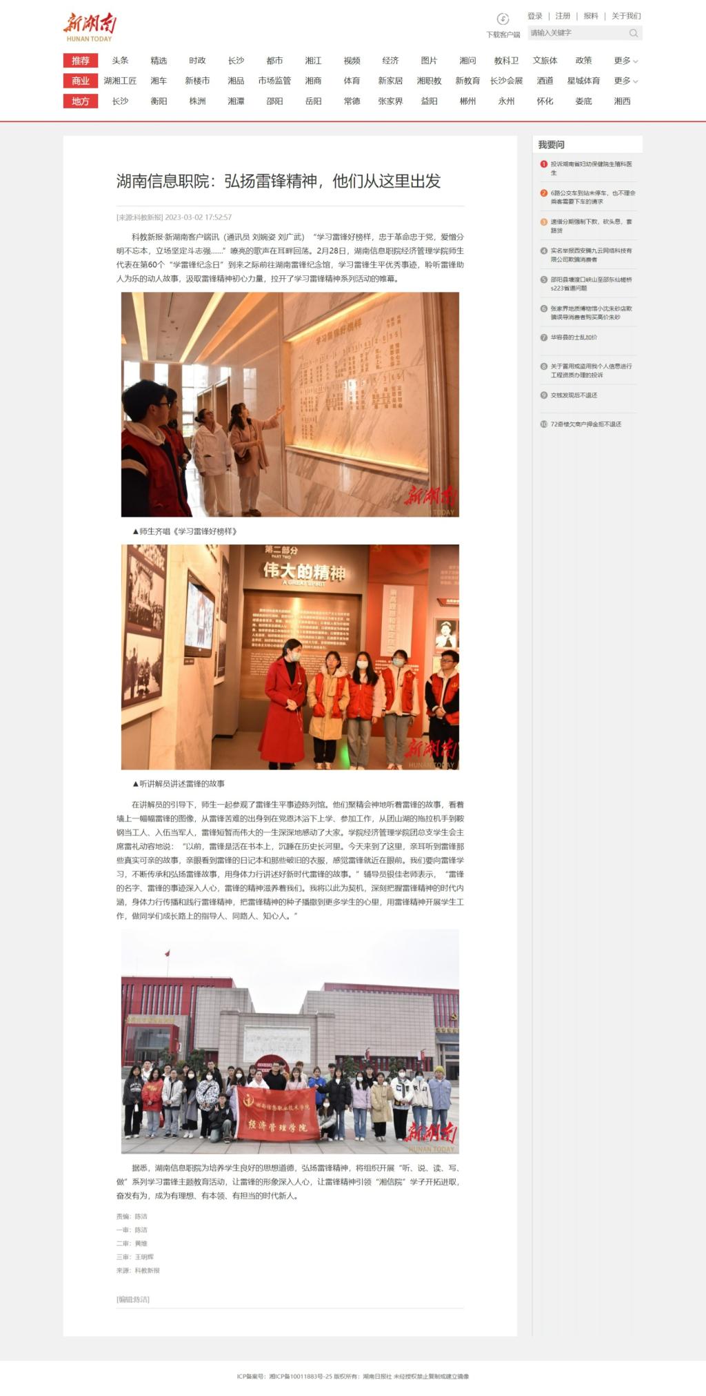 3月2日,新湖南《湖南信息职院:弘扬雷锋精神,他们从这里出发》