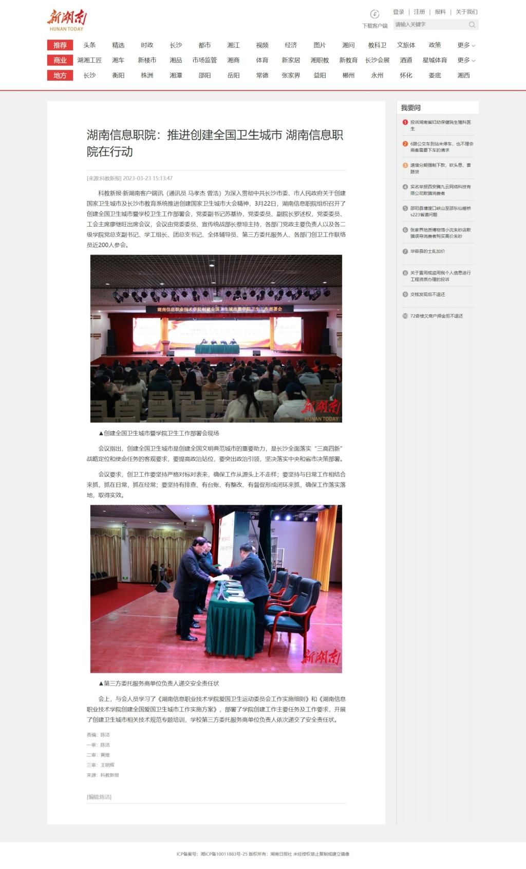 3月23日,新湖南发布《湖南信息职院:推进创建全国卫生城市 湖南信息职院在行动》