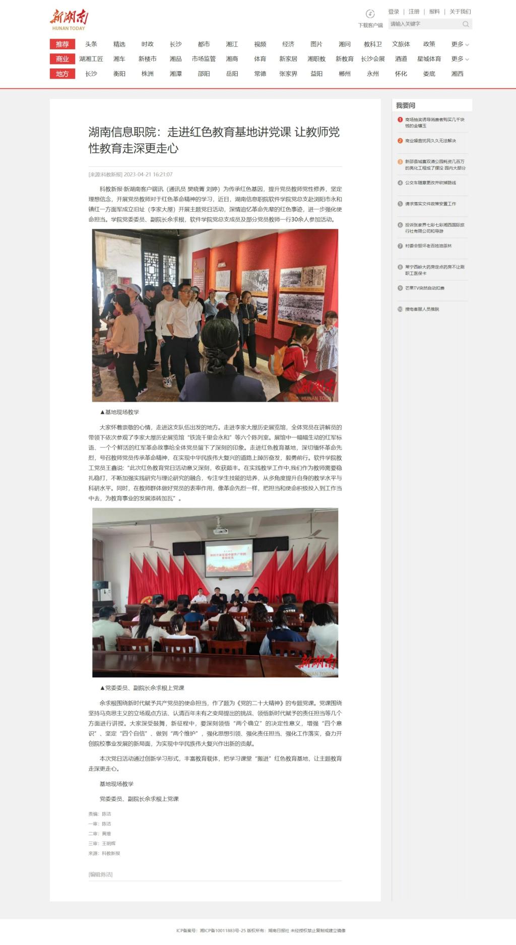 4月21日,新湖南发表《湖南信息职院:走进红色教育基地讲党课 让教师党性教育走深更走心》
