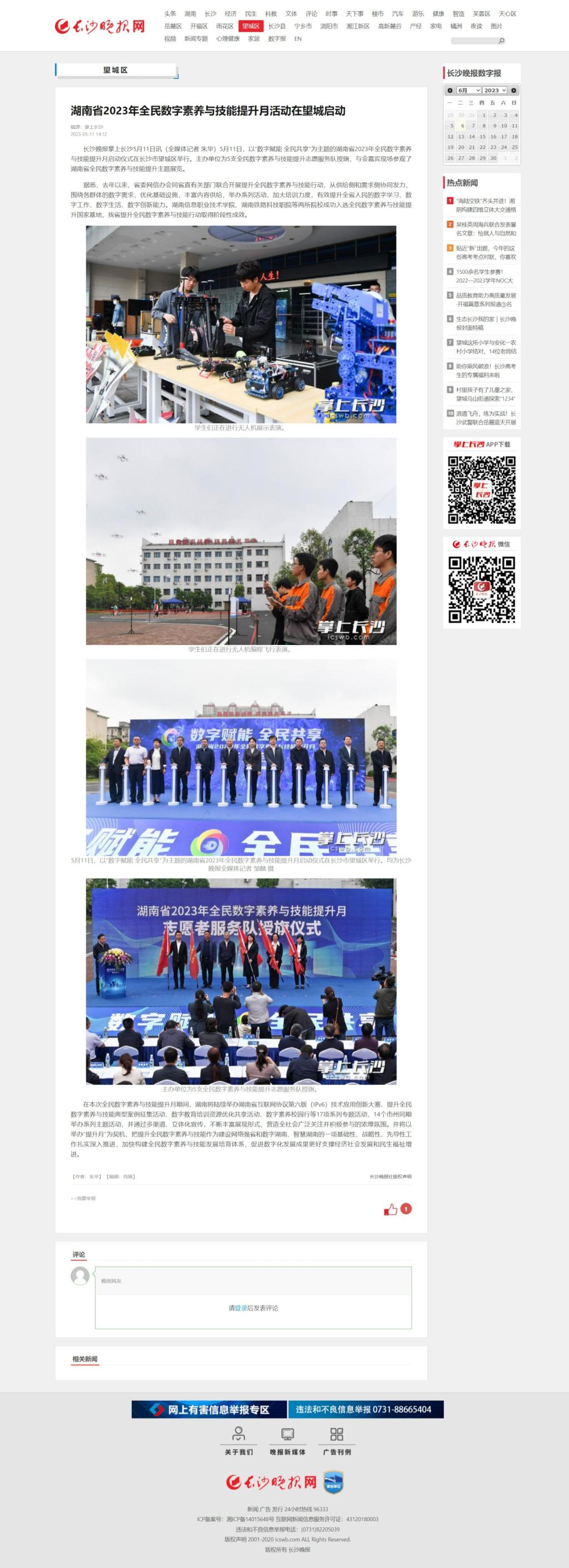 5月11日,长沙晚报网发布《湖南省2023年全民数字素养与技能提升月活动在望城启动》