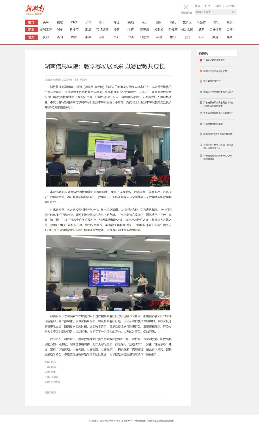 5月12日,新湖南发布《湖南信息职院:教学赛场展风采 以赛促教共成长》
