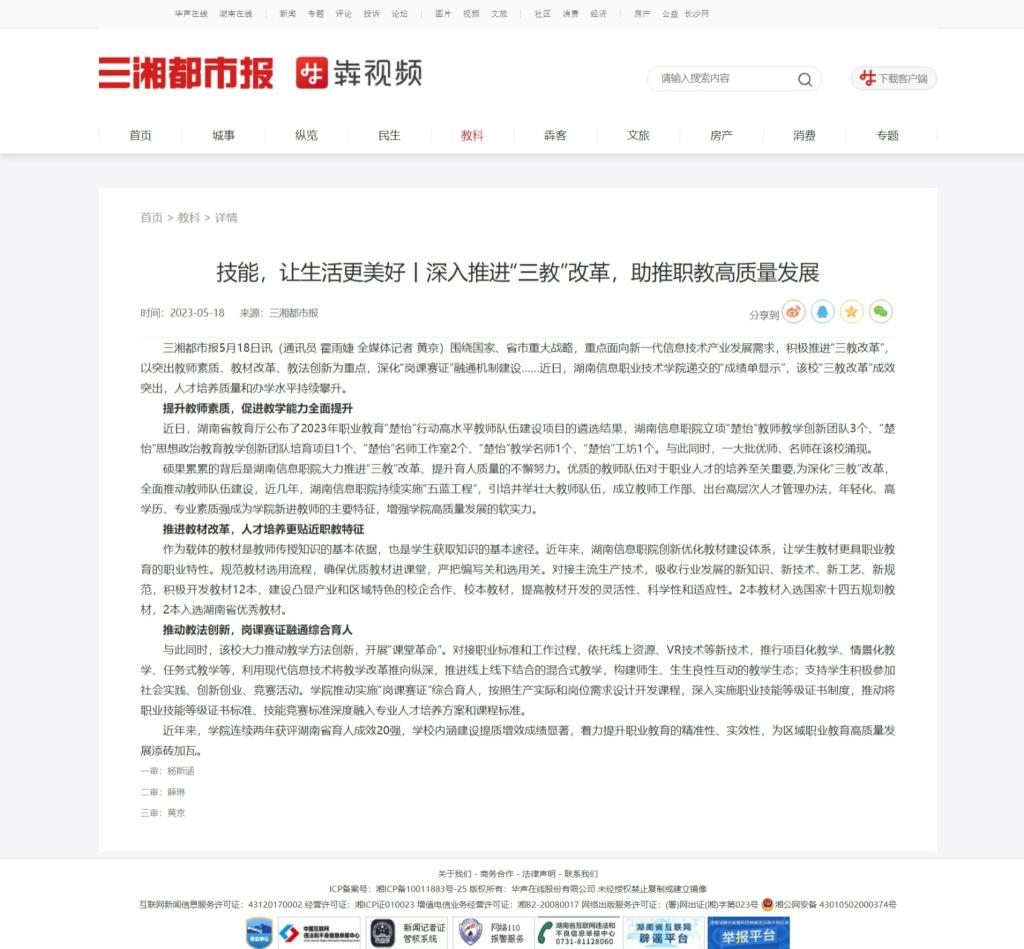 5月18日,三湘都市报发布《技能,让生活更美好丨深入推进“三教”改革,助推职教高质量发展》