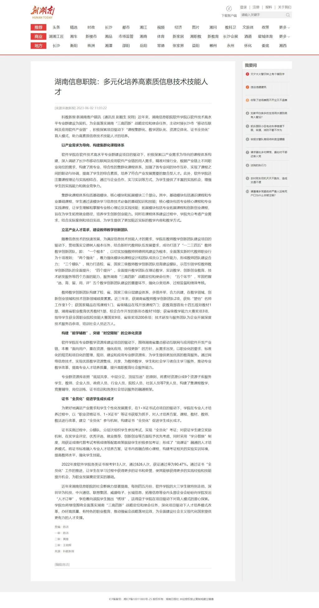 6月2日,新湖南发布《湖南信息职院:多元化培养高素质信息技术技能人才》