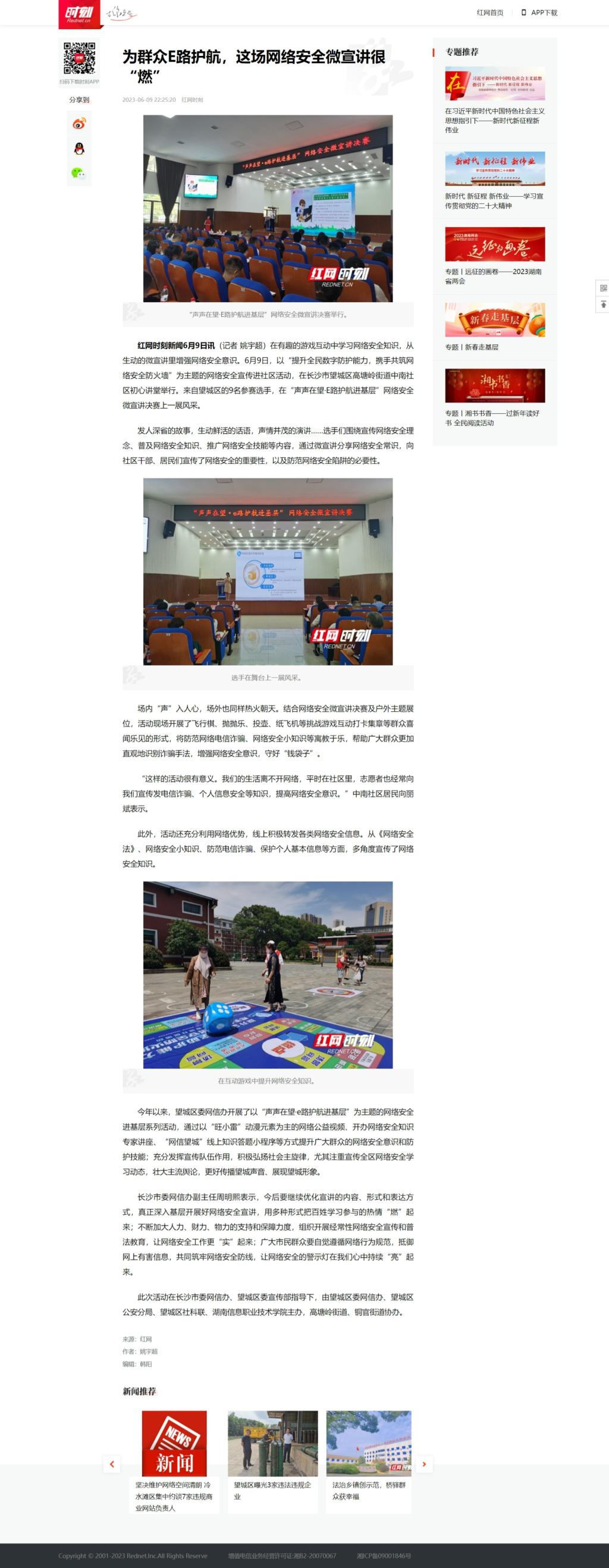 6月9日,红网发布《为群众E路护航,这场网络安全微宣讲很“燃”》