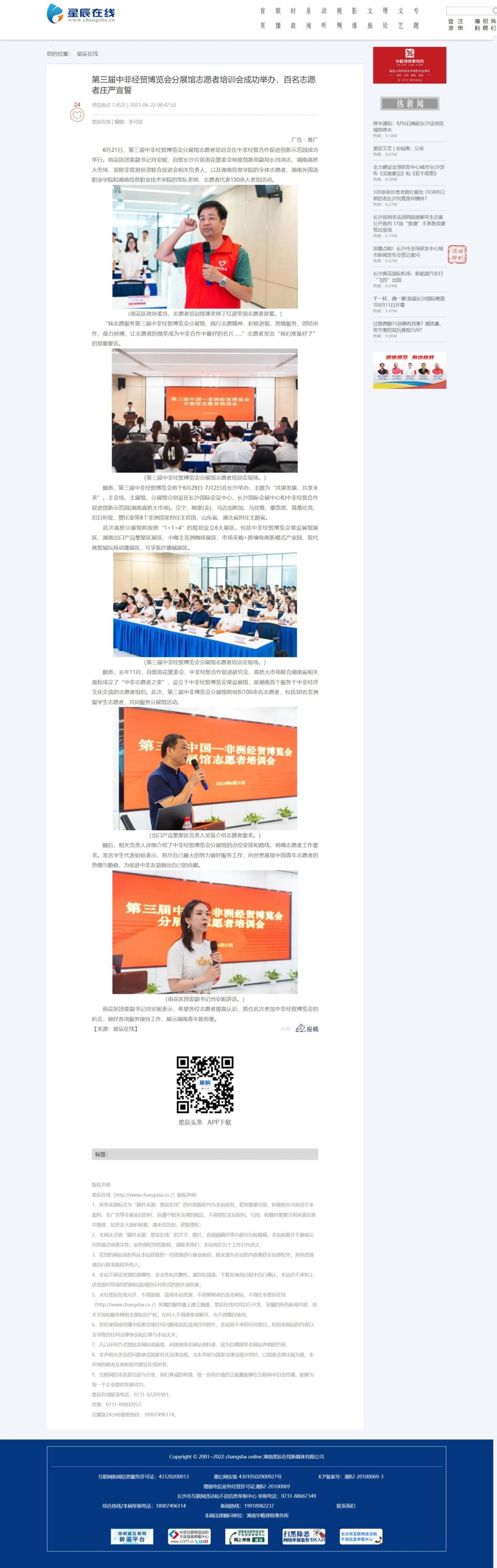 6月21日,星辰在线发布《第三届中非经贸博览会分展馆志愿者培训会成功举办,百名志愿者庄严宣誓》