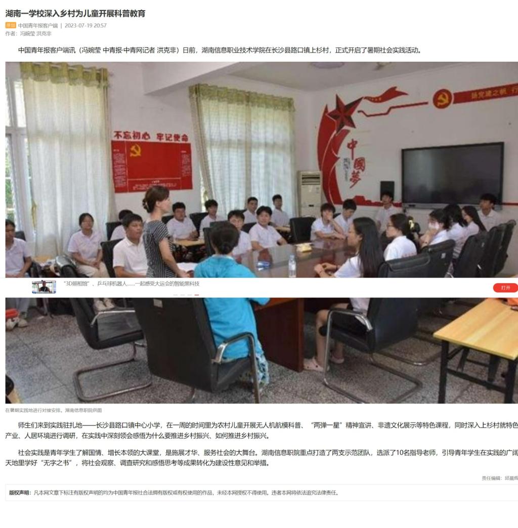 7月19日,中国青年报客户端发布《湖南一学校深入乡村为儿童开展科普教育》