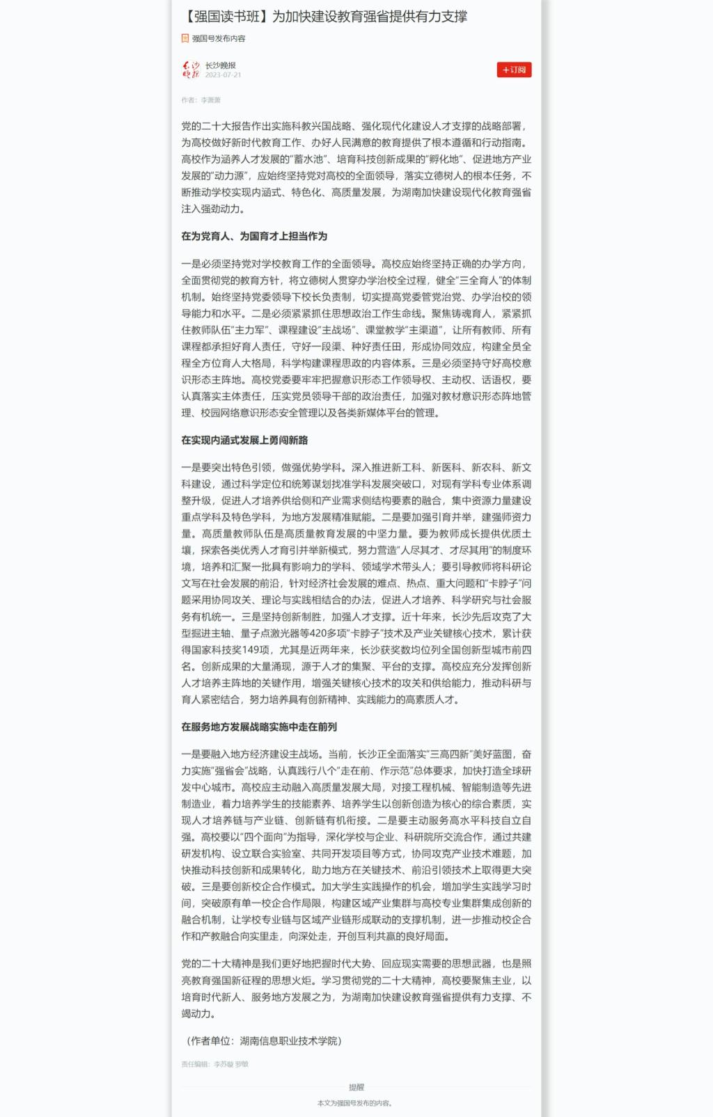 7月21日,学习强国发布《【强国读书班】为加快建设教育强省提供有力支撑》