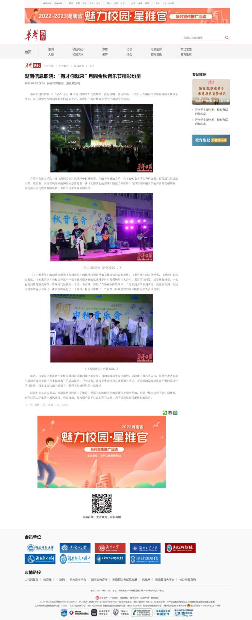 9月28日,华声在线发布《湖南信息职院:“有才你就来” 月圆金秋音乐节精彩纷呈》